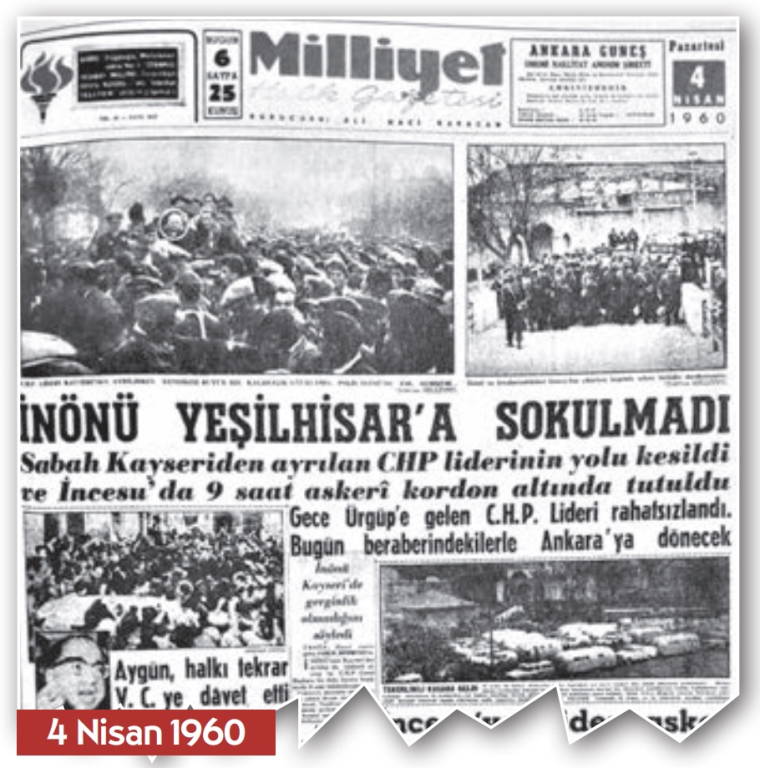İnönü, 3 Nisan 1960’ta CHP’nin Kayseri İl Kongresi’ne katılmak için Kayseri’ye gidecekti. Kayseri Valisi İnönü’nün Kayseri’ye gelmemesini istedi. Buna karşın İnönü Kayseri’ye gitti. Ancak İnönü’nün bindiği tren Kayseri’ye sokulmak istenmedi. Buna rağmen biraz gecikmeyle de olsa İnönü Kayseri’ye girdi. İnönü, oradan da Yeşilhisar’a gitmek istedi. Fakat Yeşilhisar yolu askeri birliklerce tutulmuştu.