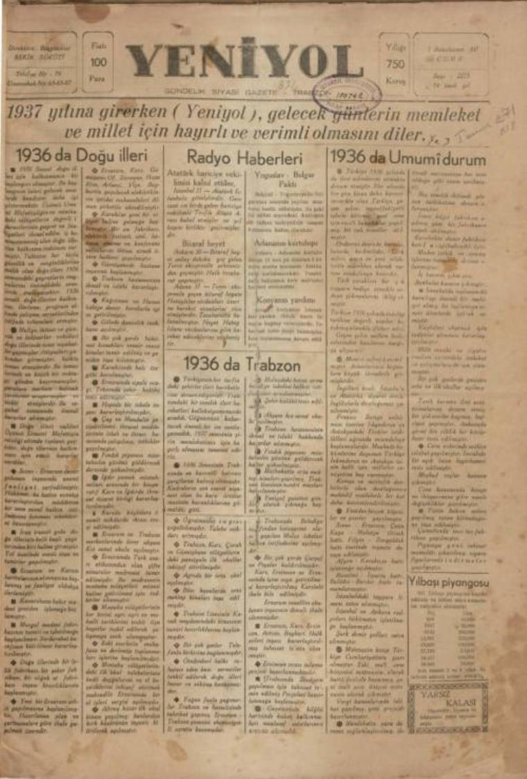 Örneğin, 1936 yılında Trabzon’da günlük olarak çıkmaya başlayan Yeniyol gazetesi, 1 Ocak 1937 tarihli sayısında, Türkiye Cumhuriyeti’nin 1936 yılı bilançosunu şöyle çıkarmıştır: