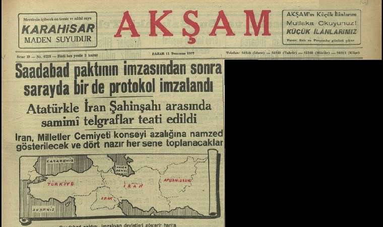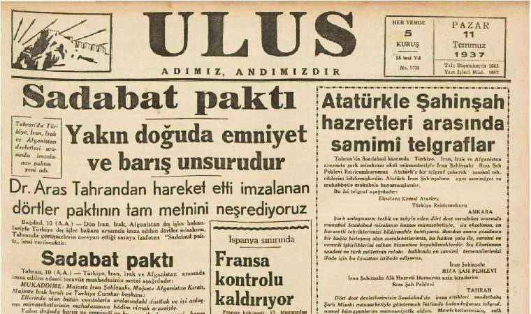8 Temmuz 1937’de Tahran’da Sadabat Sarayı’nda Türkiye, İran, Irak ve Afganistan arasında Sadabat Paktı olarak bilinen dörtlü saldırmazlık antlaşması imzalandı. 1937 yılı yazında, Türkiye’nin doğudaki üç ülkeyle Sadabat Paktı’nın imzalamasında, sınır sorunlarını kalıcı şekilde çözme, bölgedeki aşiret isyanlarını önleme ve İtalyan yayılmacılığına karşı doğuda bir güvenlik duvarı oluşturma isteği etkili oldu.