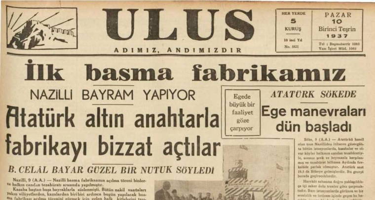 “Atatürk, Birinci Endüstrileşme Planı’na göre Sümerbank’ın kurduğu ilk Türk basma fabrikasını açtı.” (9 Ekim 1937)