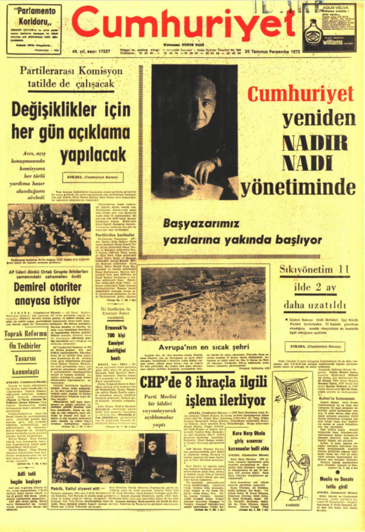 Elbette kararın hangi kurumların iradesi altında alındığı konusunda, Cumhuriyet ailesine ulaşmış herhangi bir bilgi yok. Cumhuriyet gazetesi, öncelikle Nadir Nadi sorumluluğundaki yönetim süreci içinde, 12 Mart darbesinin hemen arkasından, aile içi mirasçı damatlar eliyle bir operasyon yaşamıştı. Perde arkası gelişmelerde, 15-16 Haziran işçi direnişleri, büyük eylemlerin ardından işveren örgütleri eliyle uygulamaya koyulan ilan boykotunun da etkisi vardı. Nadir Nadi, hapiste işkence gören arkadaşlarını koruyamadığı gibi, çok sayıda her bölümden işten çıkarmalarla yüzleşince, toptan bir yılı aşan bir ayrılık süreci yaşanmıştı.