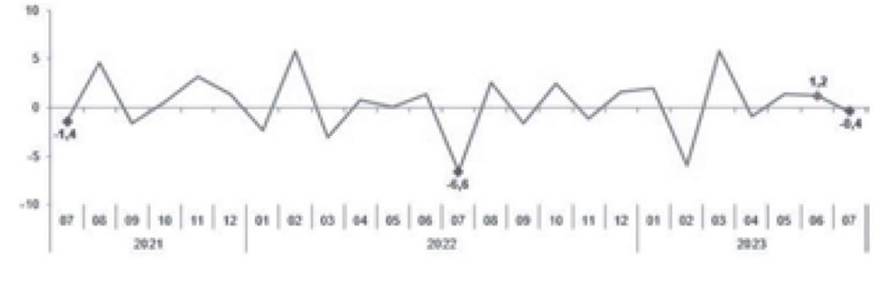 Temmuz ayında ülkemiz geçen yılın aynı dönemine göre yüzde 7.4 büyürken (nasıl olduysa!) sanayi üretimi aylık bazda yüzde 0.4 azalmış. Grafikte de görüldüğü gibi zikzaklarla geçen son yıllardaki sanayi üretiminin içler acısı halini daha ayrıntılı tartışmak lazım.