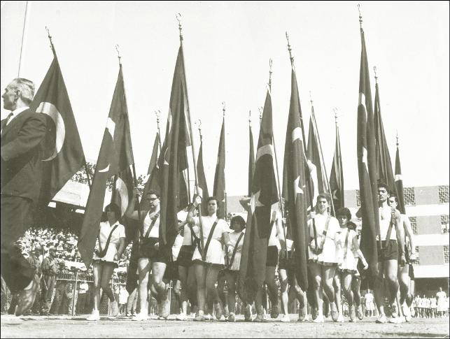 Bu fotoğraf 1964 yılının 19 Mayıs günü İzmir Alsancak Stadyumu’nda çekildi. Lise son sınıftaydım. Okulumun bayrak taşıyıcısıydım. 17 yaşımdaydım. Ön sırada, sağdan ikinciydim. İzmir’in tüm okullarının bayrak taşıyıcıları, bir küme halinde gençlik kortejinin başında yürüyorduk...
