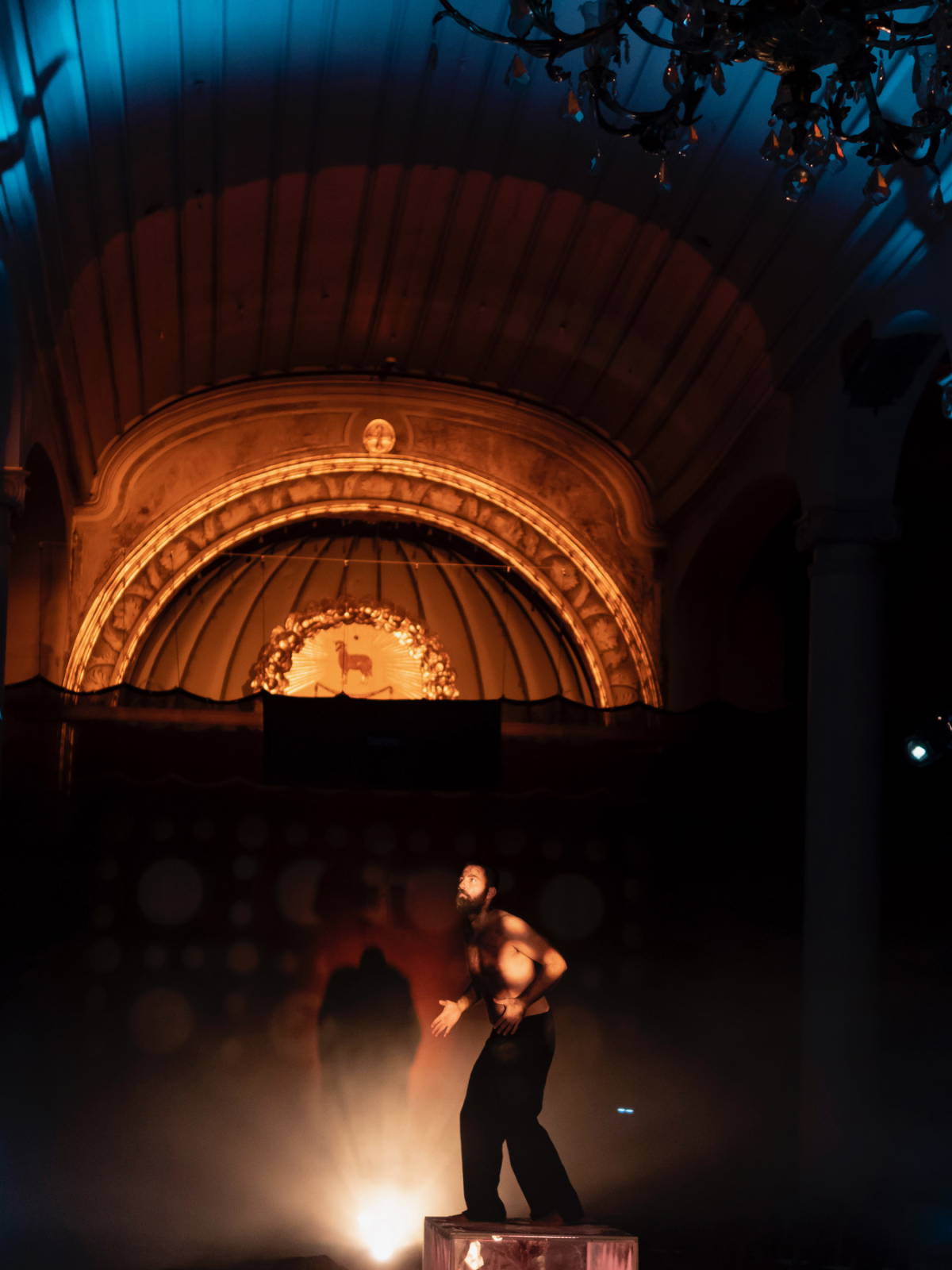 Büyü sözcüğünü özellikle kullanıyorum. “Gomidas” oyunu Kumkapı’daki Surp Vortvots Vorodman Kilisesi’nde oynanıyor. Mekân seçimi önemli, çünkü sürekli hafızalara sesleniyor. Kilisenin atmosferi, Cem Yılmazer ve Yasin Gültepe’nin ışık düzenlemeleriyle birleşince büyü kat kat çoğalıyor. Emeği geçen, katkıda bulunanları kutlarım.