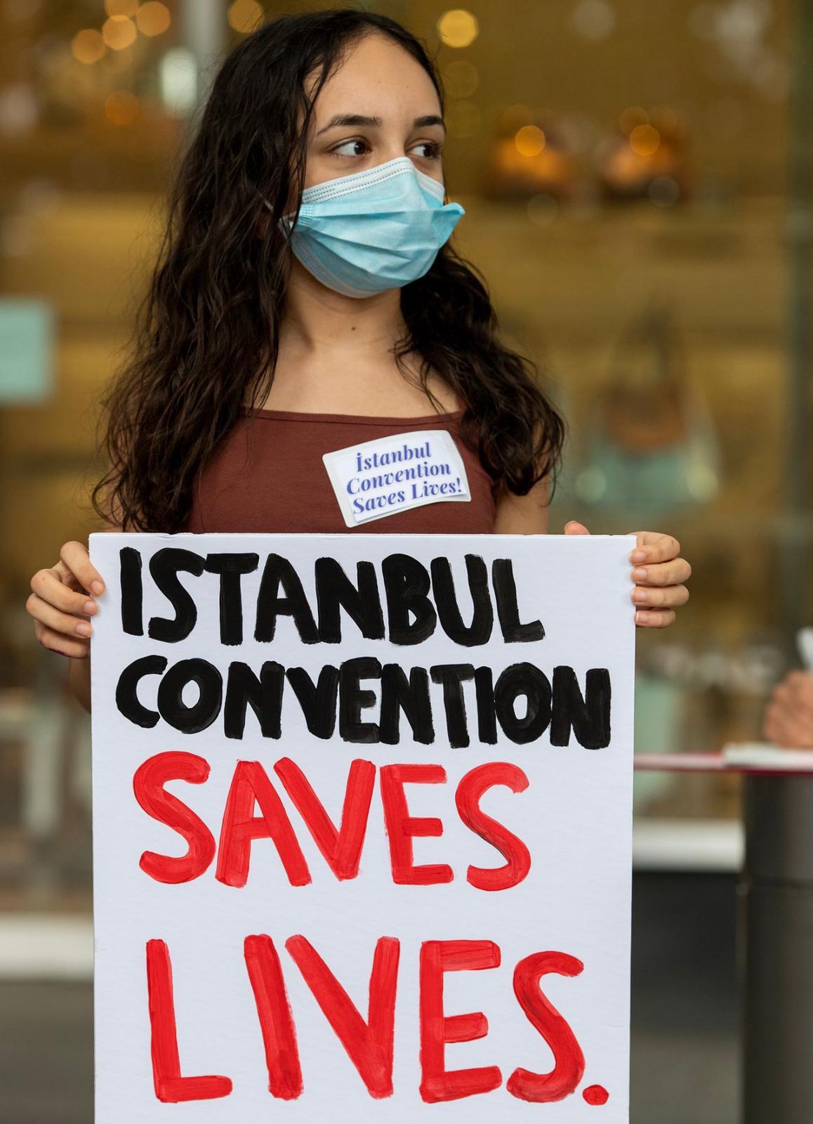 Kadınların her gün erkek şiddeti yüzünden can verdiği bir dönemde, iktidarın İstanbul Sözleşmesi’nden çıkmak istemesine de tepki gösterdi. Eylem için annesi, babası, hatta anneannesi ve dedesi yaşındaki insanları harekete geçirdi. Protestonun gerçekleştirileceği bölgenin yetkilileri ile yazıştı, yeri ve saati belirledi, basınla temas kurdu, eylem için Türkçe ve İngilizce pankartlar hazırladı.